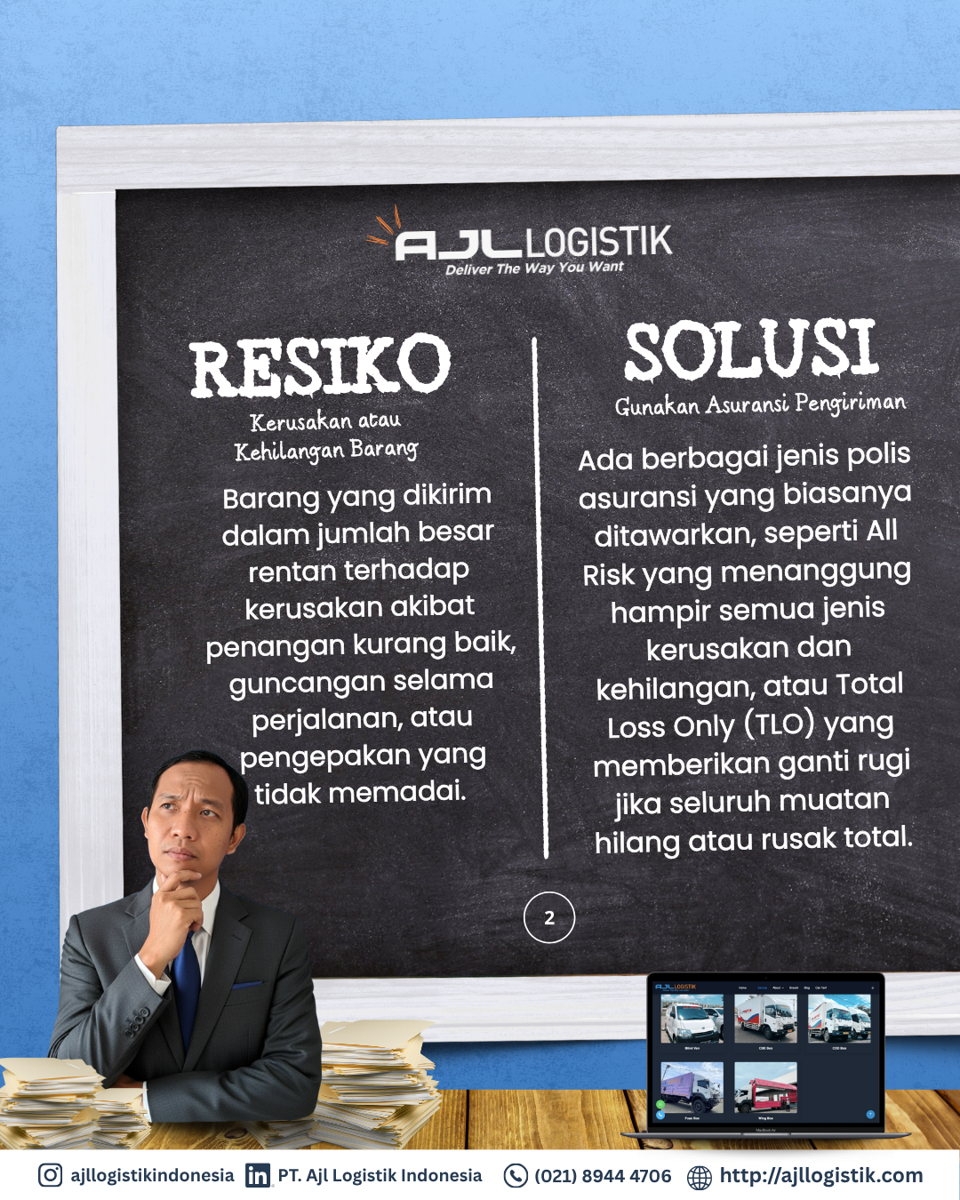 Barang yang dikirim dalam jumlah besar rentan terhadap kerusakan akibat penangan kurang baik, guncangan selama perjalanan, atau pengepakan yang tidak memadai.