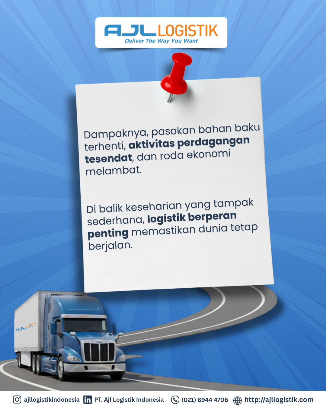 Di balik semua itu, logistik punya peran besar biar dunia tetap berjalan 🌍 Makanya, percayain pengirimanmu ke AJL Logistik Indonesia — aman, cepat, dan terpercaya! 🚚